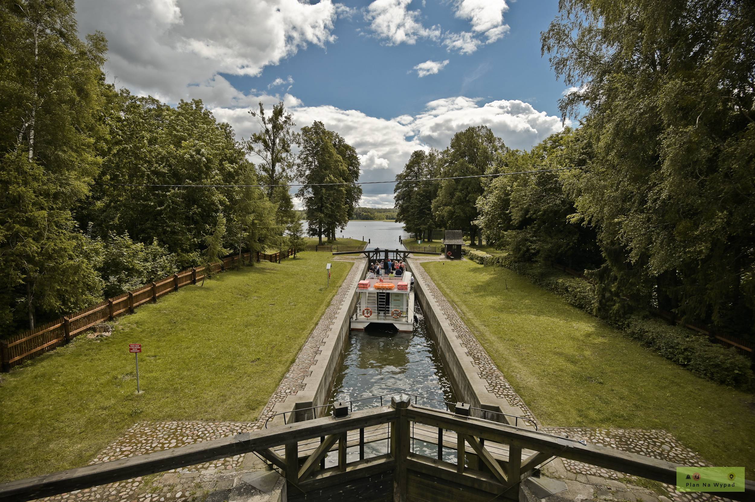 Ponad śluzą przerzucony jest betonowy mostek, z którego możemy oglądać spektakl śluzowania i dodatkowo w łatwy sposób przedostać się na drugą stronę kanału. Na niewielkim wzgórzu ponad śluzą stoi elegancki dom śluzowego, który liczy już ponad 70 lat. Trzeba przyznać, że tutaj możemy się naprawdę rozmarzyć o życiu wśród szumiących drzew puszczy, ćwierkających melodyjnie ptaków i mieniących się w jeziorach promieniach słońca…